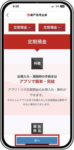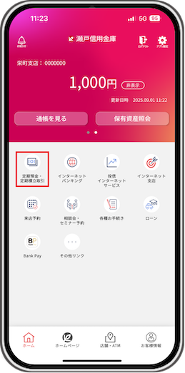 ※せとしんアプリ以外でお預入れした定期預金は解約できない場合がございます。